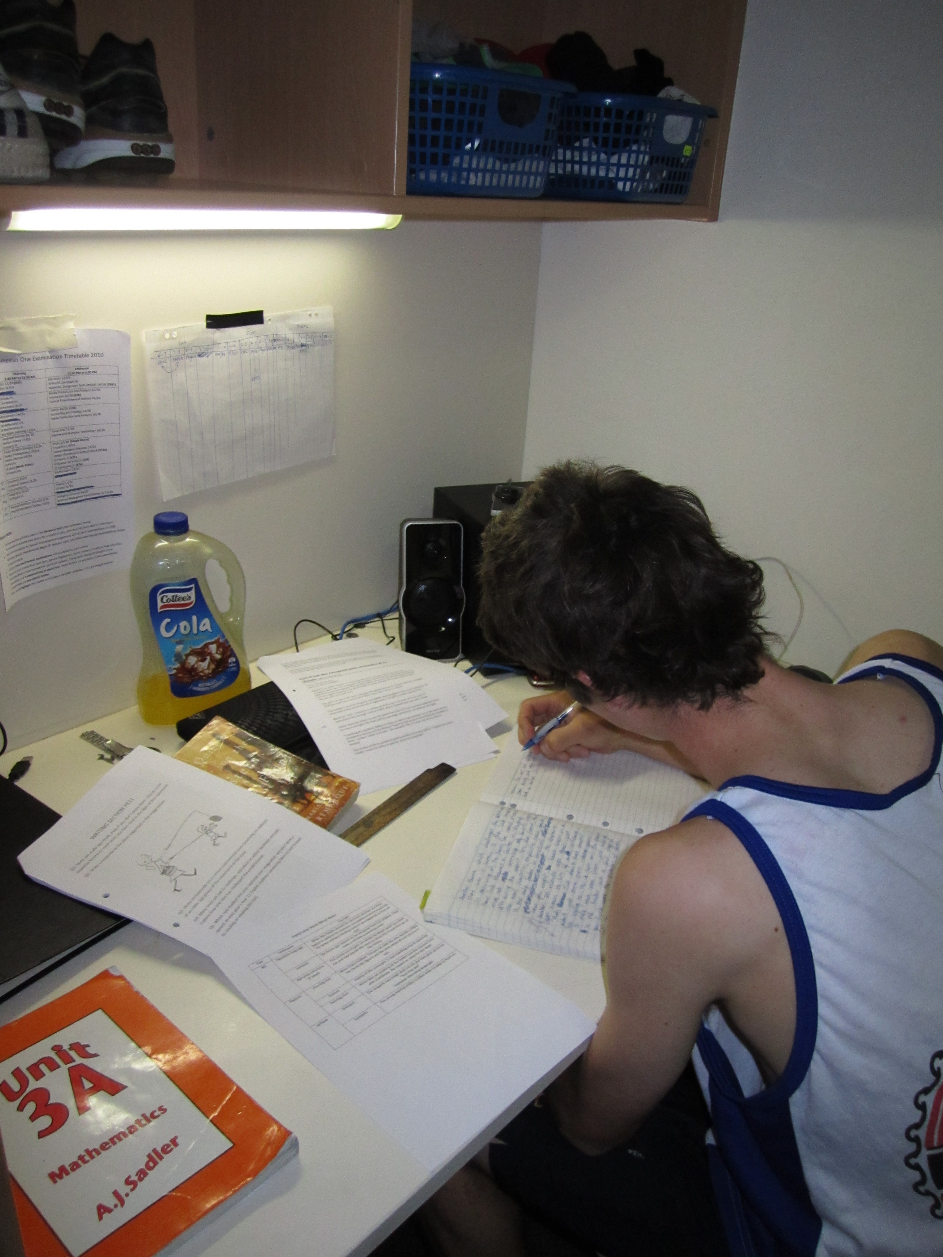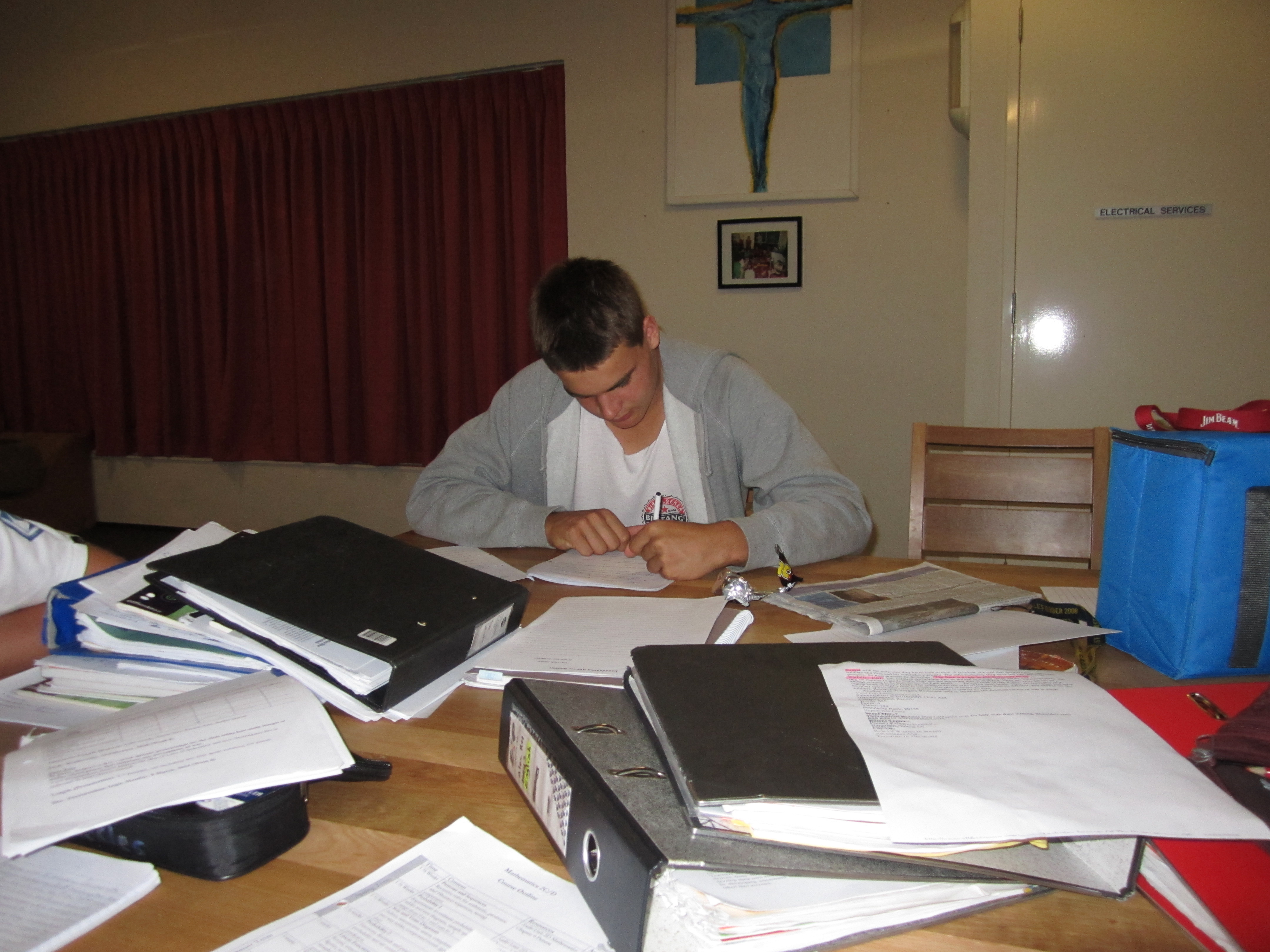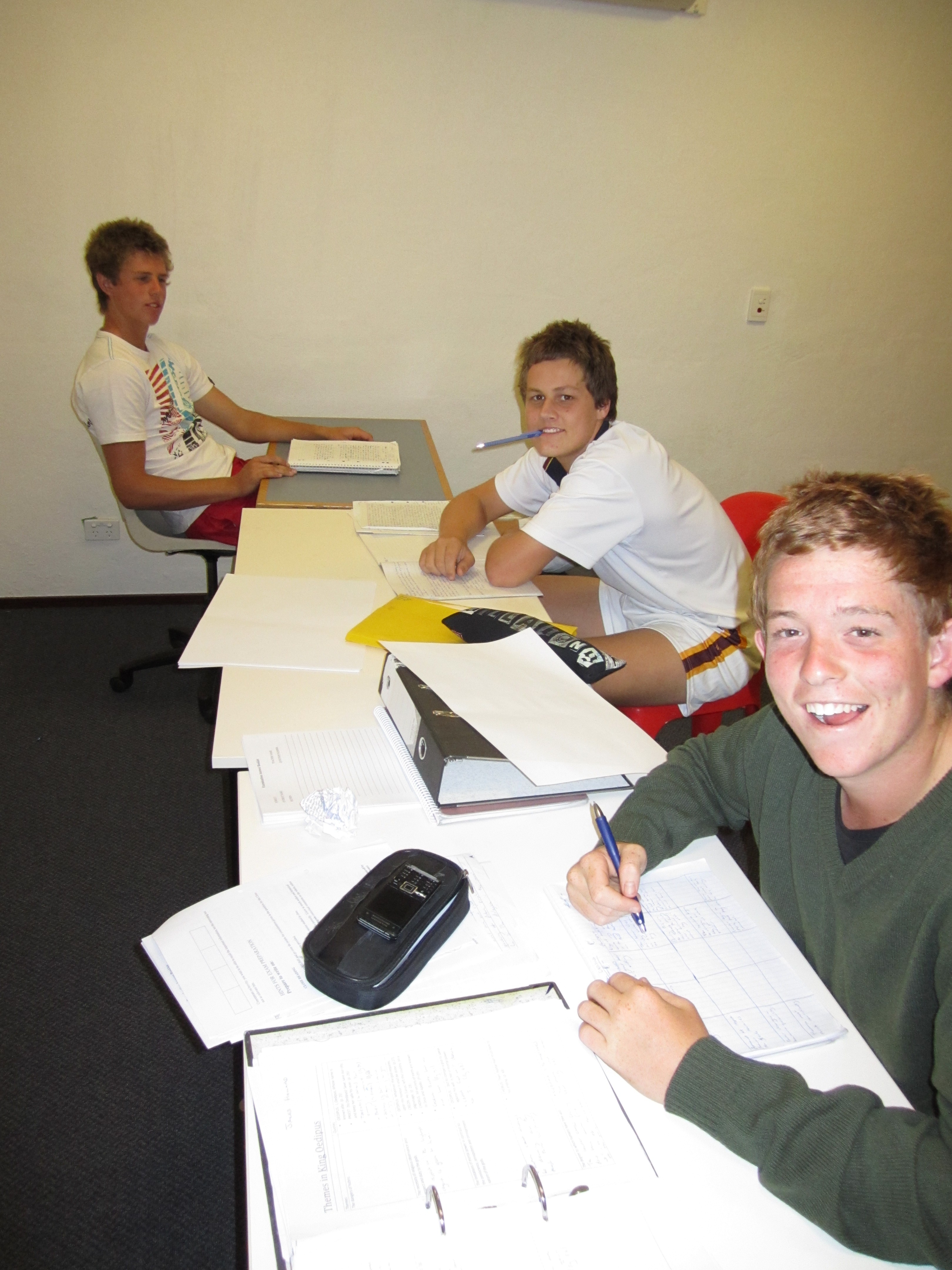 An odd sight for a Saturday night in the Boarding House - no footy, no movies, no social to attend. However, many Year 11 Boarders did take the opportunity of becoming more acquainted with their textbooks over the ANZAC long weekend, in preparation for their fortcoming exams. Plenty of 'brain food' was provided - ranging from chocolate bars to muffins and fruit - as a way of making the sobering experience that little bit more palatable. In addition to a Study Skills seminar that was well attended on Saturday afternoon, extra tutors were rostered on over the weekend to ensure that the boys maintained their focus, and so that expert advice was on hand as soon as any stumbling blocks were reached. Let's just hope it pays off!