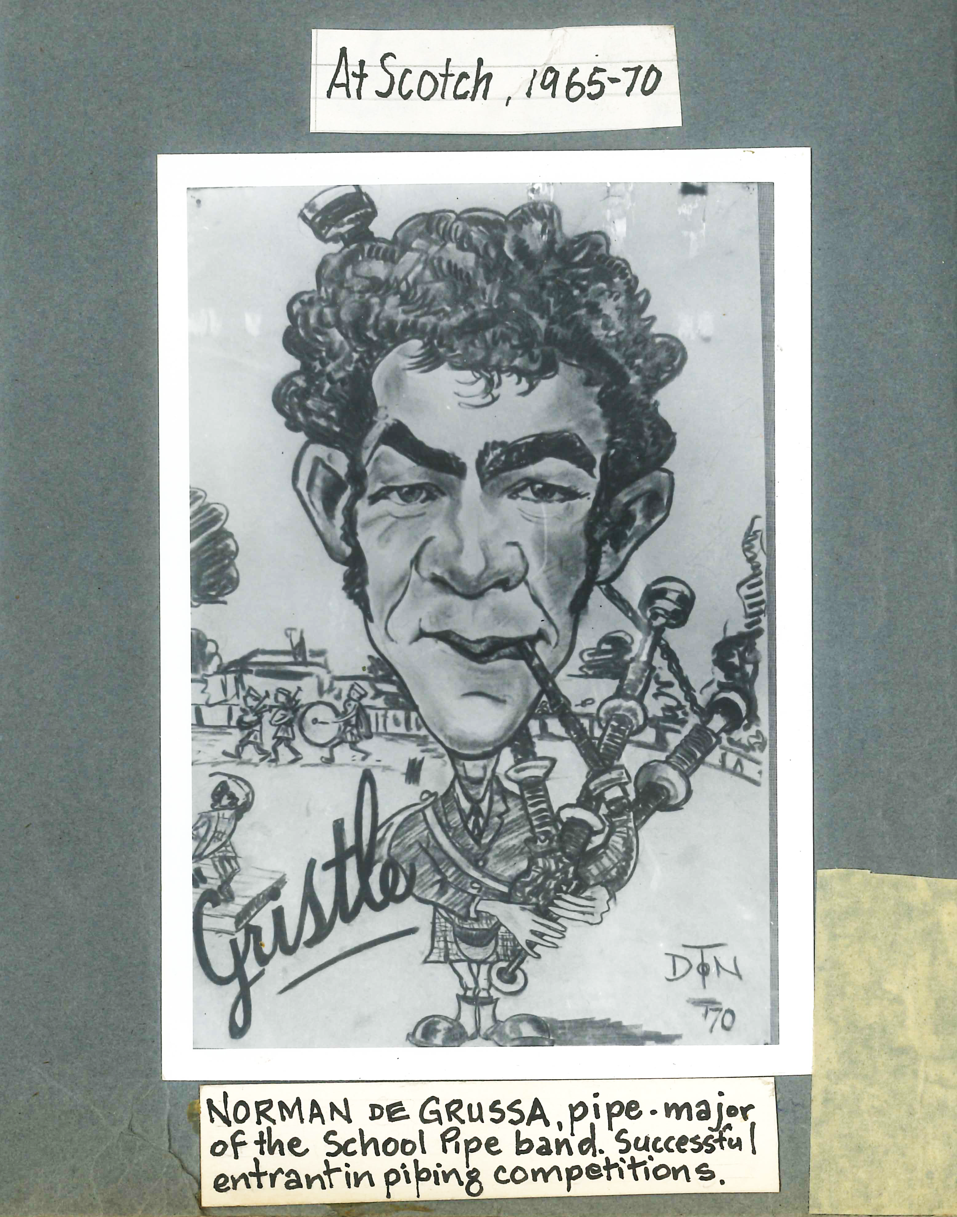 Norm started at Scotch in 1965, in the equivalent of what would now be Year 7. He was a boarder in Anderson House, and joined the Junior School Choir that year, winning a prize for Music. In 1966, Norm joined the Scotch College Pipe Band.